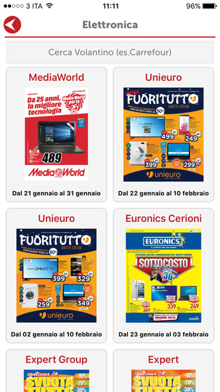 La funzione Cerca velocizzare la ricerca di volantini, cataloghi, prodotti e negozi.